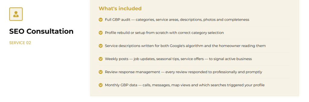 Technical SEO handles the behind-the-scenes factors that affect how search engines crawl and index your site. This includes page speed, mobile usability, structured data, and crawl error fixes. Getting all three working together is what separates specialists who deliver results from those who do not.